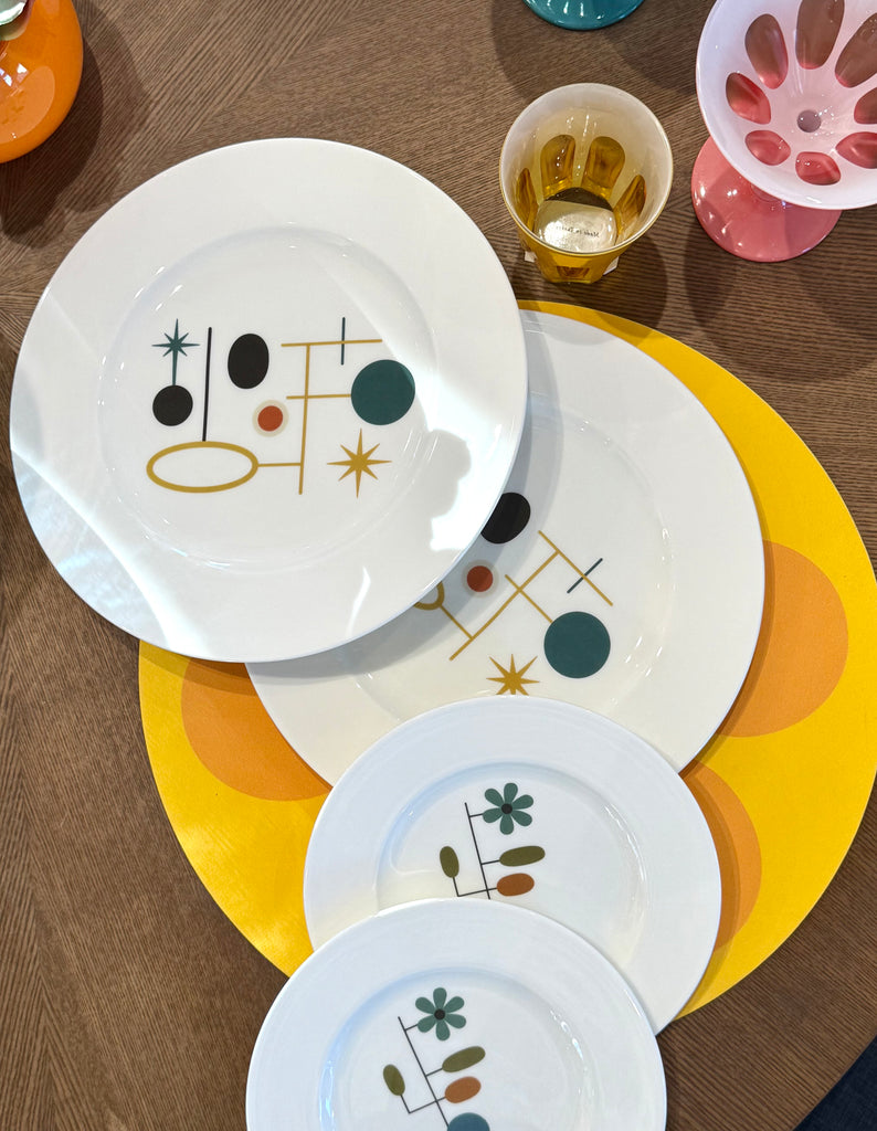 Elevate your table with this Mid Century Modern Ceramic Dinner Plate, featuring a bold atomic-inspired design that perfectly captures the playful, retro-cool aesthetic of Palm Springs and Palm Desert living. With clean lines, vibrant shapes, and iconic mid-century motifs, this 10.5" plate turns every meal—from casual dinners to weekend brunches—into a stylish moment.