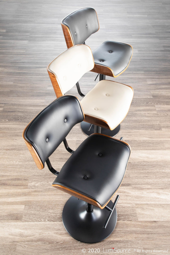 Add a pop of mid-century flair to your space with the Louie Barstool—a fabulous nod to vintage modern design with all the comfort you crave. Featuring a curved bentwood frame, tufted faux leather seat and backrest, and a sleek black pedestal base, this stool is as stylish as it is supportive. Whether you're sipping cocktails in Palm Springs or entertaining guests in your retro-inspired home, the 360° swivel and adjustable height make it a perfect fit for any mid-century bar or kitchen counter.