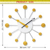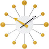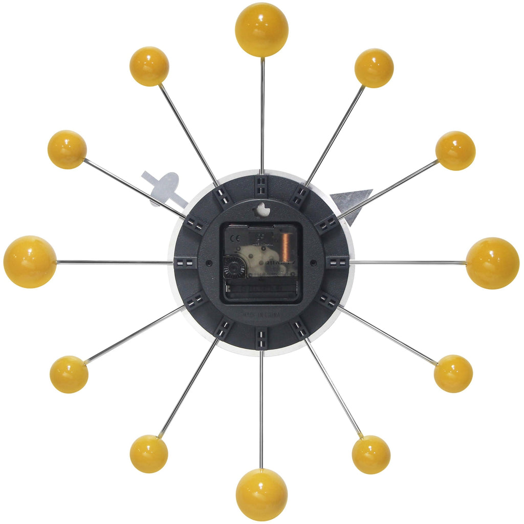 With a touch of space-age kitsch, the Orb Spoke is a fun wall clock that will provide a touch of whimsy in your home. The Orb Spoke features an attractive open-face design with metal spokes radiating from its center. The Orb Spoke wall clock requires a quick assemble (under 5 minutes) on arrival after which it will be ready to be hung for your enjoyment. With its multi-colored orbs and bold hands featuring fun geometric designs, the Orb Spoke is cool, quirky and a fun addition to the bedroom, dorm room or entertaining area.
