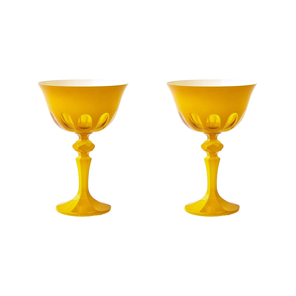Bring a splash of golden glamour to your next soirée with this fabulous Rialto Coupe Glass. With their curvy silhouettes and sculptural stems, they’re the perfect blend of retro charm and Palm Springs chic—just the kind of drama you'd expect from a cocktail glass in a mid-century modern desert home.