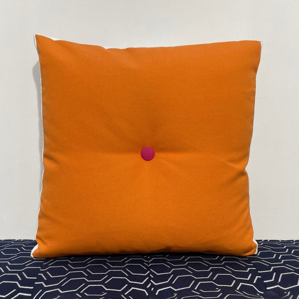 Add a groovy splash of retro charm to your space with our Flower Power Pillow! Featuring bold Hot Pink-hued petals, a crisp white background, and a cheerful Tangerine button and back panel, this pillow is as fun as it is functional.